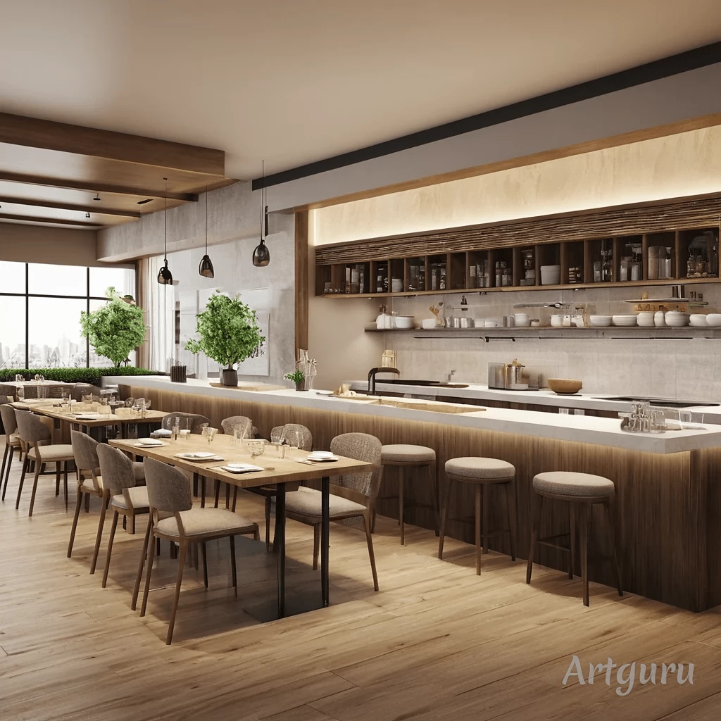 Menawarkan pengalaman makan yang eksklusif, area makan chef’s table menjadi tren populer di restoran mewah. Layout dapur disesuaikan dengan meja makan khusus di dekat area memasak, memungkinkan pelanggan untuk menyaksikan chef bekerja dan berinteraksi langsung. Tren ini tidak hanya meningkatkan pengalaman makan tetapi juga menambah nilai eksklusif yang dapat menarik pelanggan premium.