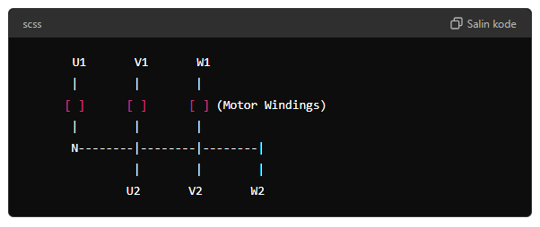 1. Motor Start: Motor dimulai dalam konfigurasi star untuk mengurangi arus inrush.